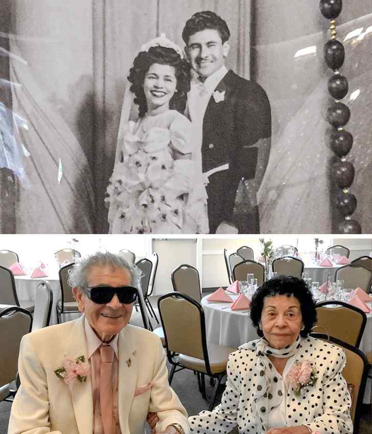 “On the seventieth anniversary of their wedding, they reaffirmed their wedding vows for the second time.”