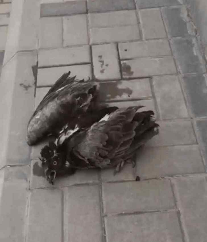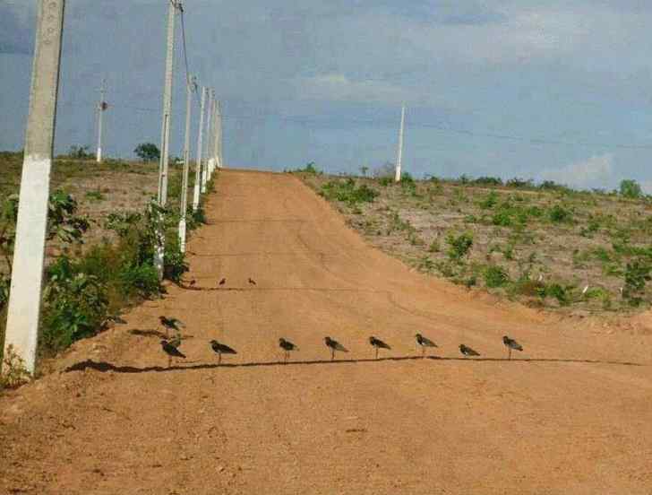 “To endure the 104°F heat, these birds lined up in a very thin shadow.”