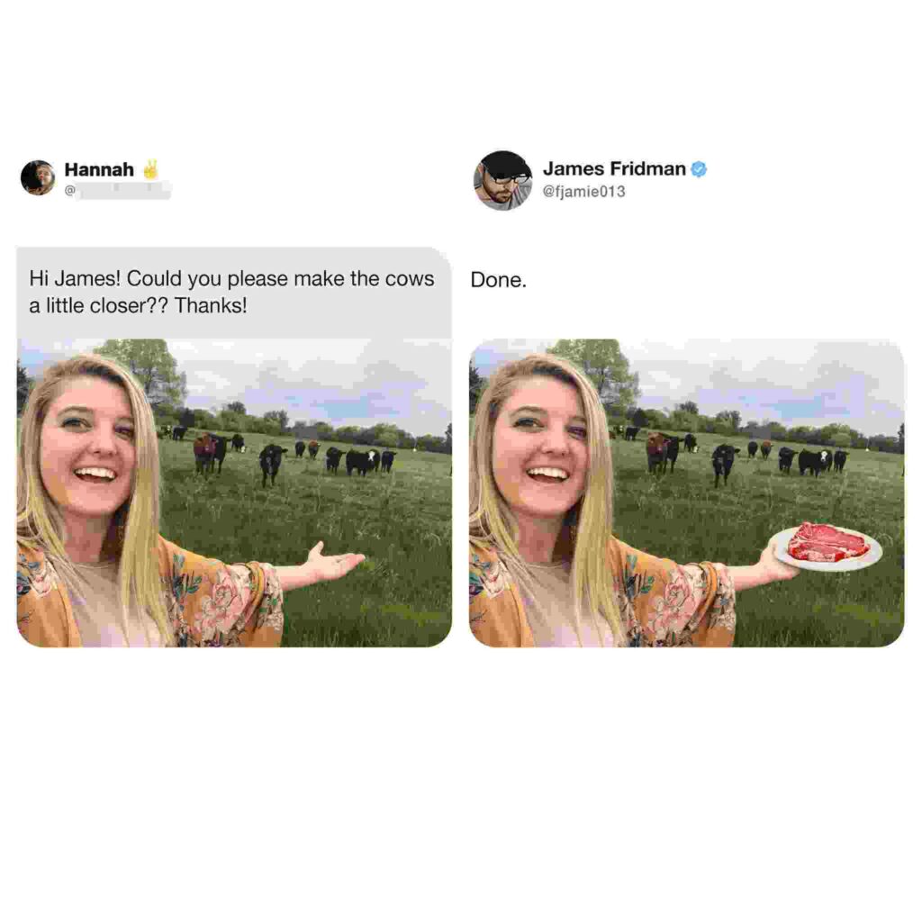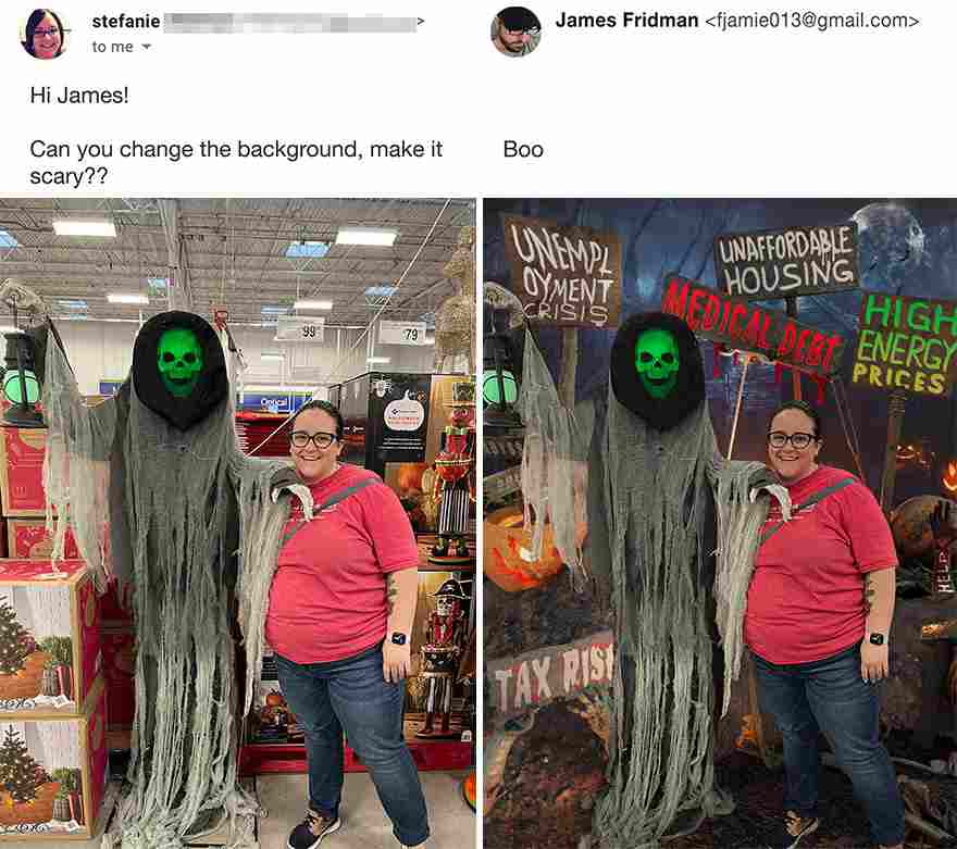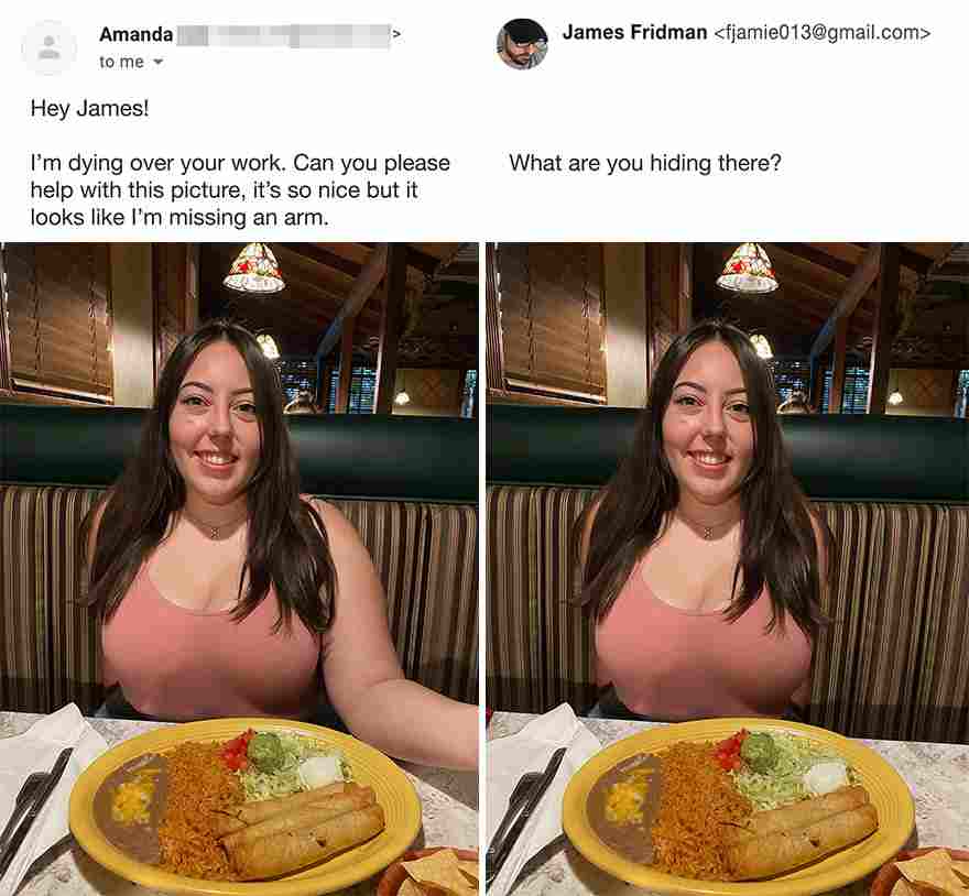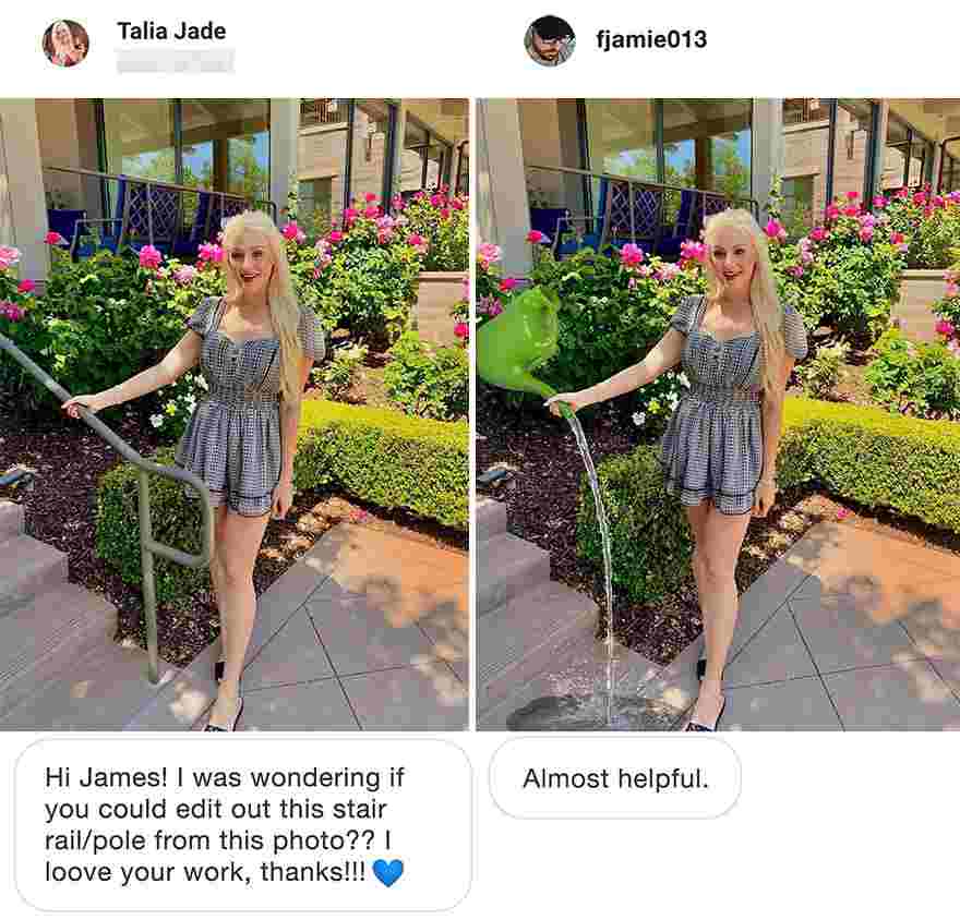 If you’d want James to edit your photos, you can do so by sending them to him through his website. However, make sure they aren’t private photos that you don’t want to be shared! And get ready for his troll edits to burn you!