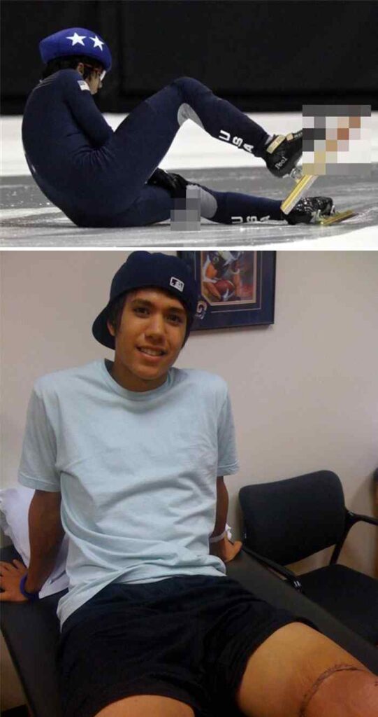 At the 2009 U.S. Olympic Trials, J.R. Celski used his right skate blade to slice through his entire left quadriceps.