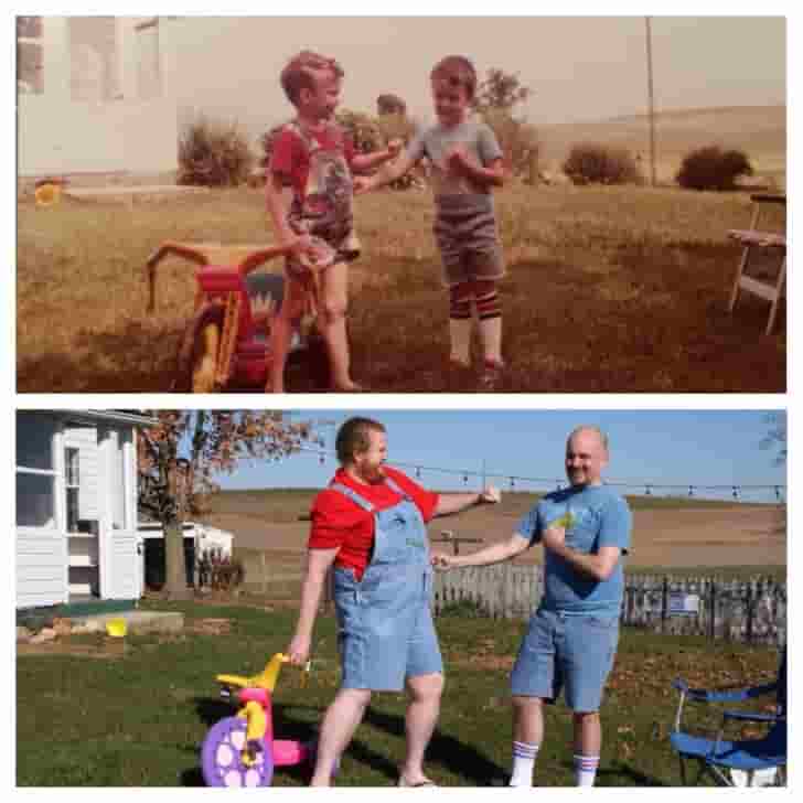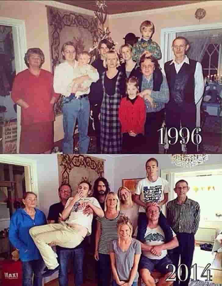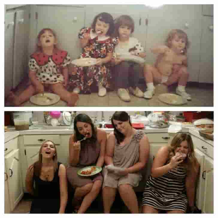Many people come up with the idea of recreating old photographs and the process of recreating old photographs is apparently very fun. The funniest thing we notice in pictures is that through our appearance changes, there are still many things which do not change with time and when we look at the pictures we realize how easily we can move back to our past and remember and see that we still feel the same way even today.