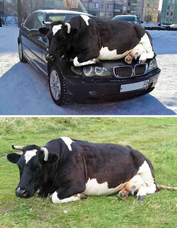 A picture of a cow lying on a car’s hood first appeared on the internet in early 2013. The picture didn’t get a lot of publicity at first. However, on October 18, 2013, the Surrey Roads Policing Unit shared this picture on Twitter with the caption: “Remember as the days get colder, animals are drawn to the warmth of vehicles, so search wheel arches or other hiding places.”