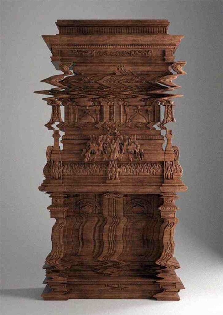 This image first appeared on the internet in 2013. According to several blogs, it is “a meticulously carved cabinet that appears to be a digital malfunction.” Really, it’s a computer-designed oak furniture concept by Ferruccio Laviani. The concept resulted in a bedside table that was shown at an Italian furniture exhibition in 2013. As a result, the image above depicts a digital concept rather than a physical cabinet.