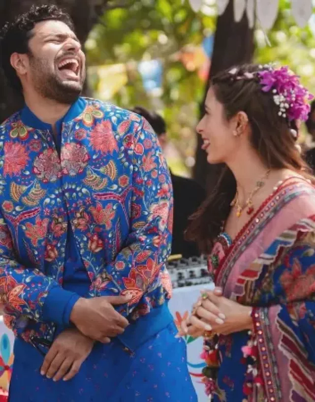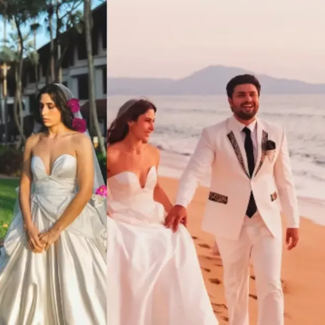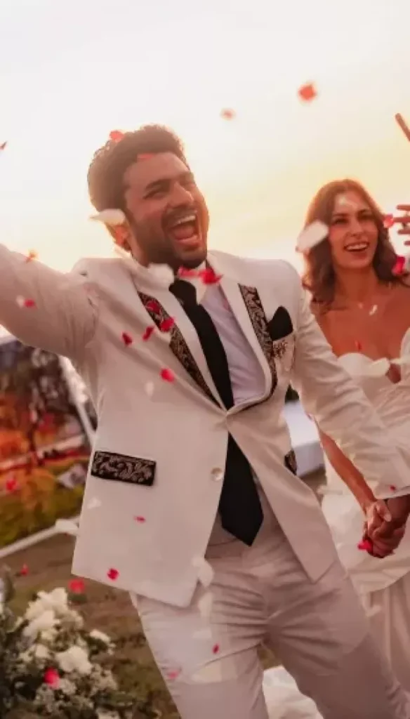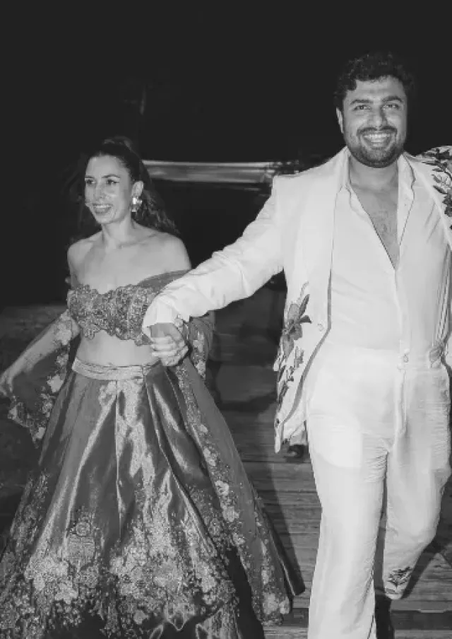 Prakhar and Claudia’s union isn’t uniform – it’s a beautiful blend, where Indian opulence meets Mexican mirth in a melody of meaning. The orchid veil? A motif of resilience, mirroring their cross-continent courage. Fashion’s fusion – Aisha Rao’s artistry with Waimari’s weave – weaves their worlds without a seam.
