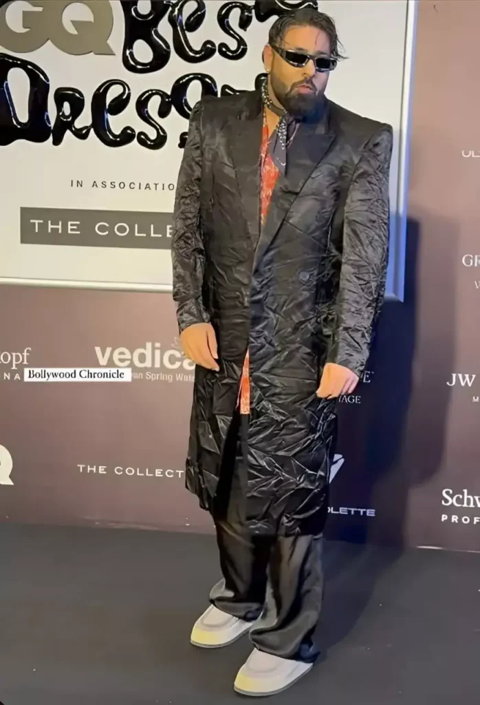 Known for his daring fashion choices and revolutionising rap in India, Badshah recently made headlines for an unusual ensemble he donned to an award presentation. The rapper, who is well-known for songs like Let’s Nacho, Tareefan, and Garmi, shocked fans by showing up in an enormous, wrinkled black coat. This outfit rapidly gained popularity and sparked a tonne of online comparisons.