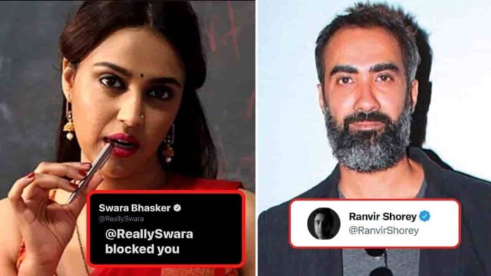 Swara Bhaskar blocks Ranvir Shorey on Twitter
