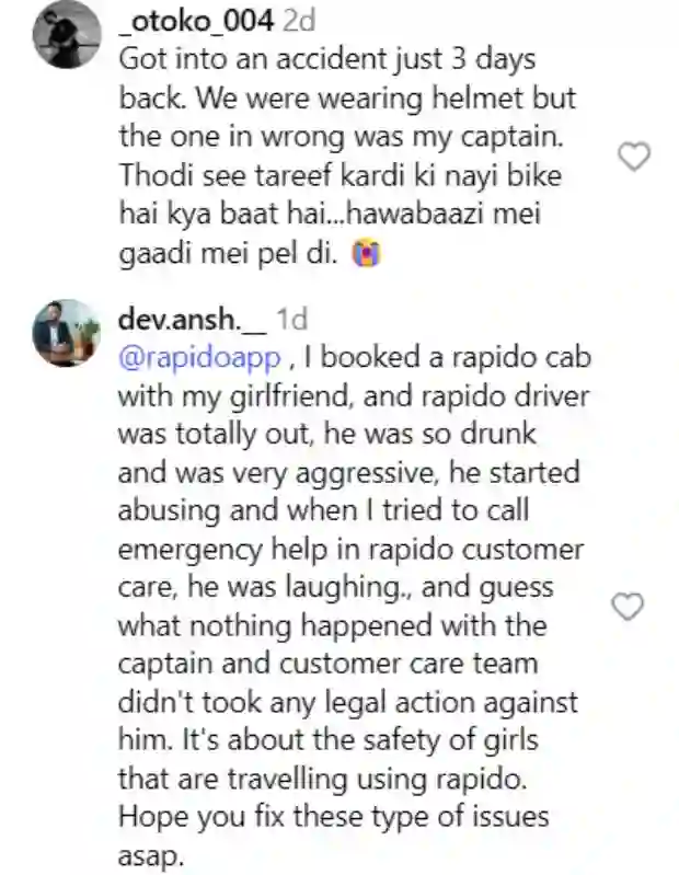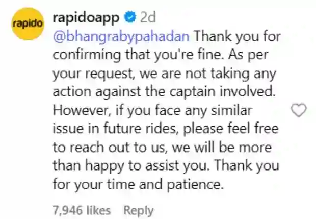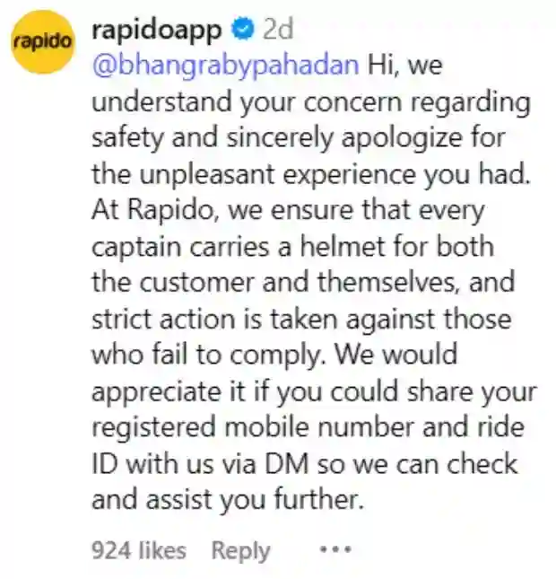 Rapido promptly released a comment in reaction to the article, expressing regret for her ordeal and requesting further information. The business stated,