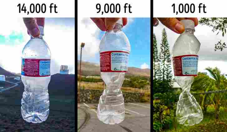 This sealed plastic bottle illustrates how, with height, air pressure changes.