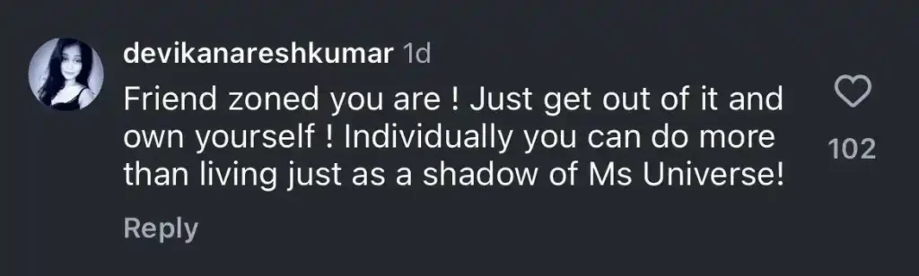 By remaining connected to Sushmita long after their split, the comment implied that Rohman had lost his individuality.