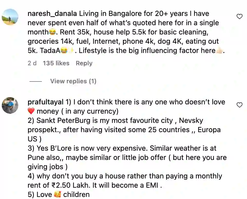 The reel, posted on her Instagram, has netizens glued—comments pouring in like monsoon rains. One user quips, “Your expenses are double what most Indians make—lifestyle tax?” Another defends: “Paying fairly for double duty? That’s the dream.” And the skeptics? “₹45k for a maid? That’s inflating wages for locals!” It’s a mirror to Bengaluru’s evolving job market, where skilled caregivers command premiums amid the city’s expat boom.