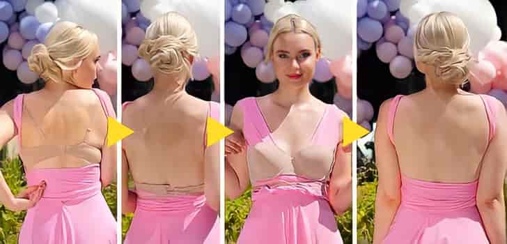 The last thing you probably want to draw attention to when wearing a backless dress is your bra on your back. Here’s a hack to turn your everyday bra into a strapless one for free so that all eyes are on your back and not your underwear.