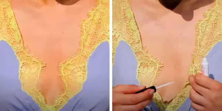 All you need is some lash adhesive to quit worrying about indecent necklines. After applying a small amount of adhesive to your chest’s neckline, lightly push your clothing. That’s it! Without worrying, enjoy.