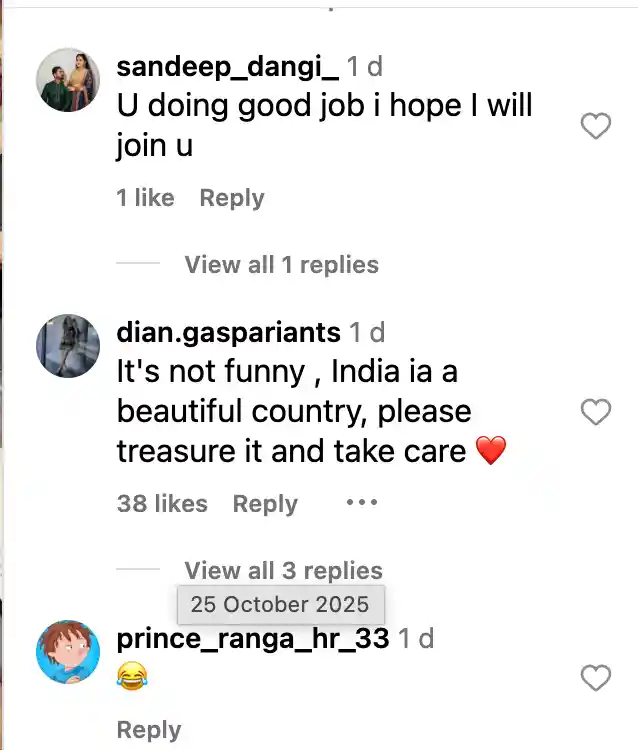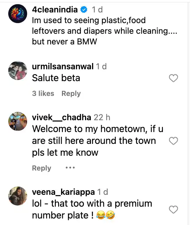 Amusement aside, it’s sparking action: “Really appreciate what you’re doing for India. I’m not an Indian citizen anymore, but I’ll definitely take responsibility for my whole village once I get back. Let’s make India clean, one village at a time.” Concern cuts deep: “It’s not funny, India is a beautiful country, please treasure it and take care.” With 100K+ views, it’s fueling shares under “Indian street irony BMW,” blending laughs with a nudge for better bins and awareness.