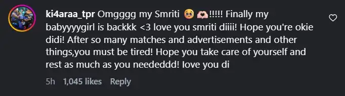 Fans flooded the comments with relief and roars: “Finally seeing that smile – you’re our queen, Smriti!” one gushed, while another added, “Cricket first, always – take your time, we love you.” The post, a partnership that feels perfectly timed, has already notched 100K+ likes – a testament to Smriti’s star power shining through the shadows.