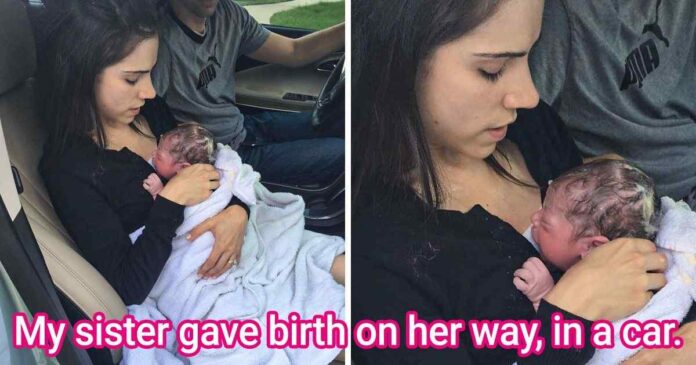 “In the automobile, in her driveway, my sister gave birth to her kid.”