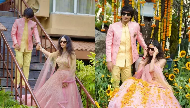 Then, the proposal plot twist: A intimate affair where “Mohit” (Avantika’s pet name for Sourav) became “forever” – sealed with a ring that sparkled as much as their story. The haldi? A viral vision: Avantika in a soft pink lehenga that flowed like a dream, Sourav twinning in a yellow suit topped with a pink jacket for that pop-of-color punch. Turmeric-tossed and tradition-tied, it was the perfect prelude to paradise.