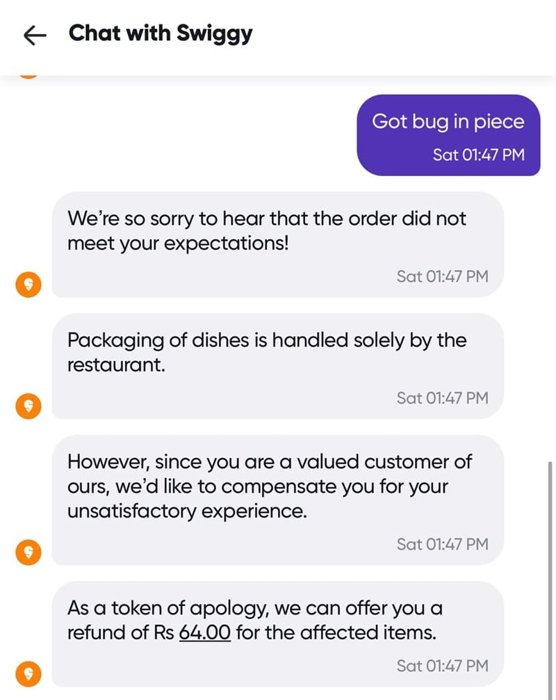 After his article went viral, Teja got a call from another Swiggy employee. The individual suggested that he file a complaint with the Food Safety and Standards Authority of India (FSSAI) and promised him a full refund. About this, Teja wrote,