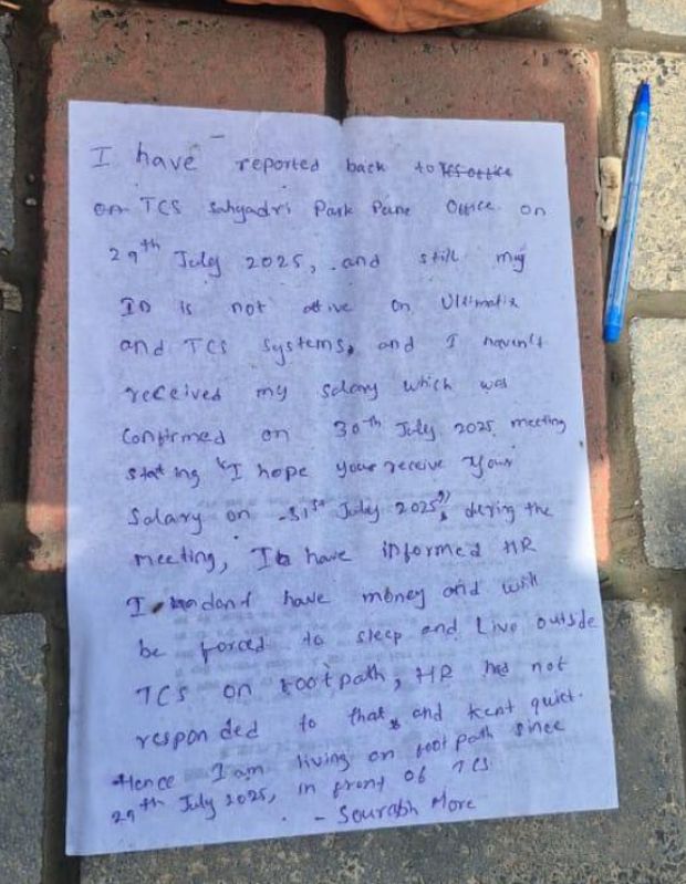 TCS Responds After Employee Sleeping Outside Pune Office Footpath Goes Viral For Salary Delay