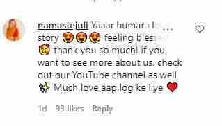 Julie, too, made a comment after witnessing the sweet film of their love storey.