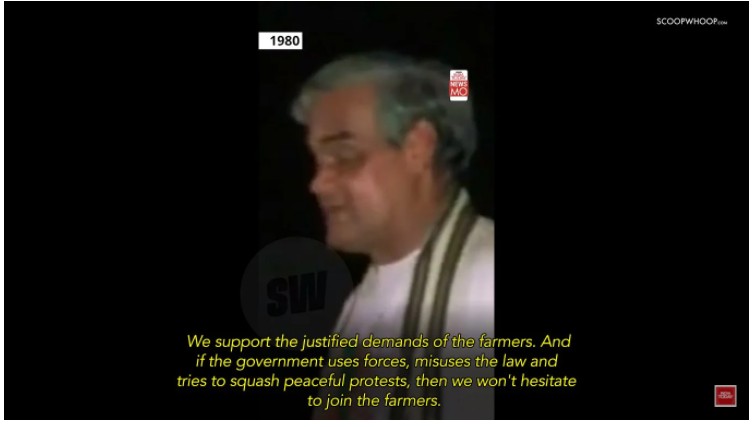 भाजपा के भक्त अटल बिहारी वाजपेई का 1980 का भाषण किसानों और उनके ऊपर सरकार के अत्याचार के बारे में सुन लें! pic.twitter.com/nko4wNdlgU— Prashant Bhushan (@pbhushan1) February 4, 2021