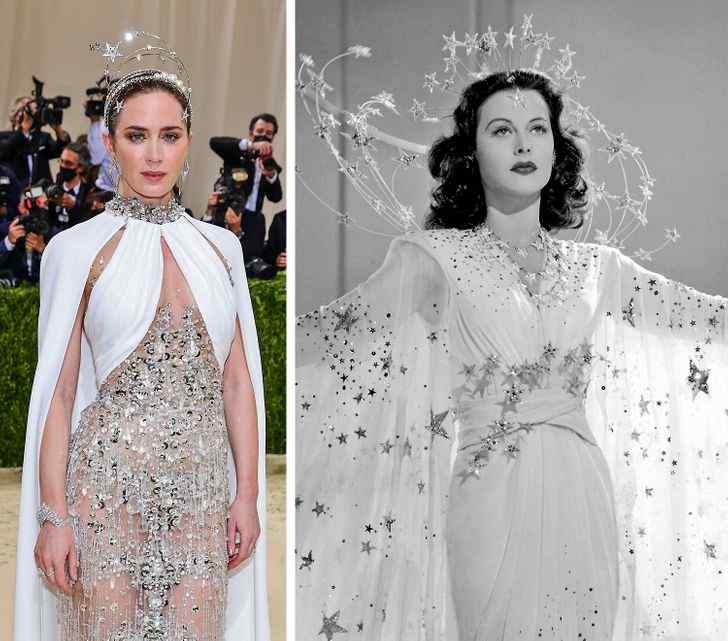 The outfit worn by Emily Blunt at the 2021 Met Gala was inspired by the garment worn by Austrian-American actress Hedy Lamarr in the film Ziegfeld Girl.