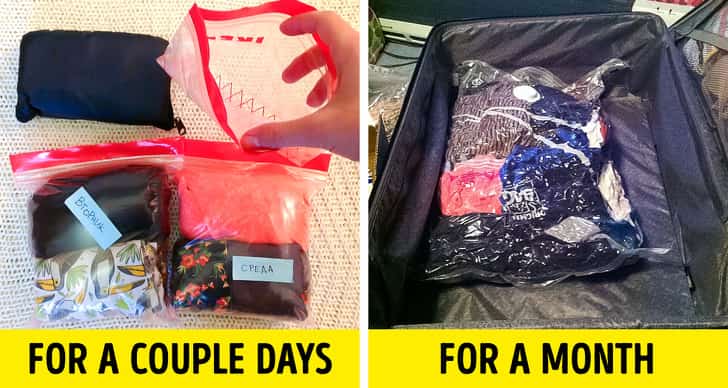 If something spills into your luggage, this form of packaging can help you arrange items by category and secure your clothing.