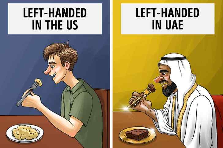 In several Middle Eastern cultures, welcoming someone with one’s left hand or eating with one’s left hand is considered impolite and unhygienic. Because the left hand is used to clean oneself after going to the restroom, it is considered the filthy hand and is never used to welcome guests at the dinner table.