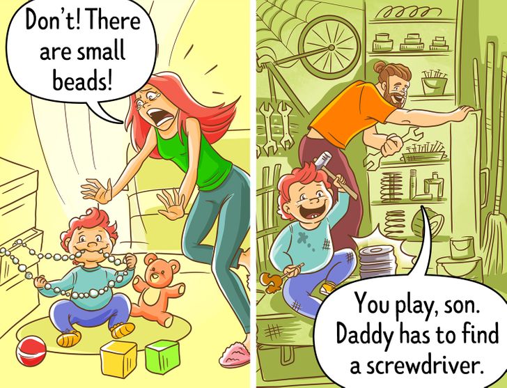 8 Truthful Comics About How Differently Moms and Dads Raise Their Children
