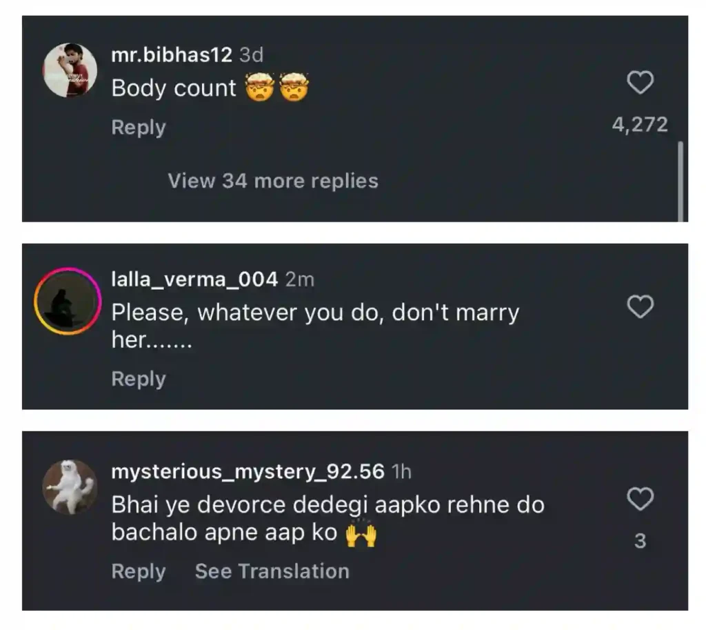 People made offensive comments and warned Ashish about Elli’s alleged “body count”—a slang word frequently used to discuss someone’s previous relationships or se*ual partners—turning what should have been a harmless moment of happiness into a target for internet hate.
