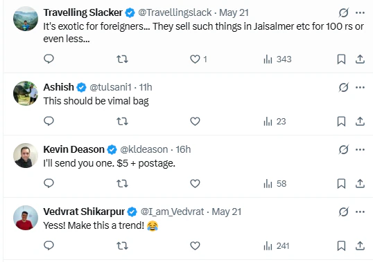 Social media users are occupied with talking about the “Indian souvenir bag” on X in the meantime: