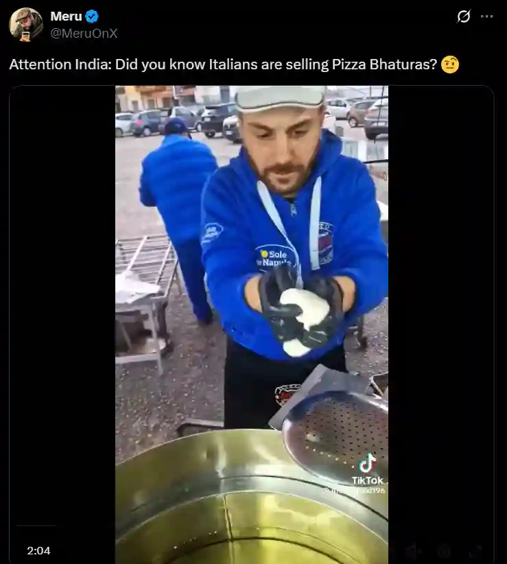 X user @MeruOnX shared it with “Attention India, did you know Italians are selling pizza bhaturas?”—the funny Indo-Italian twist sparked shares, debates, and millions of views.