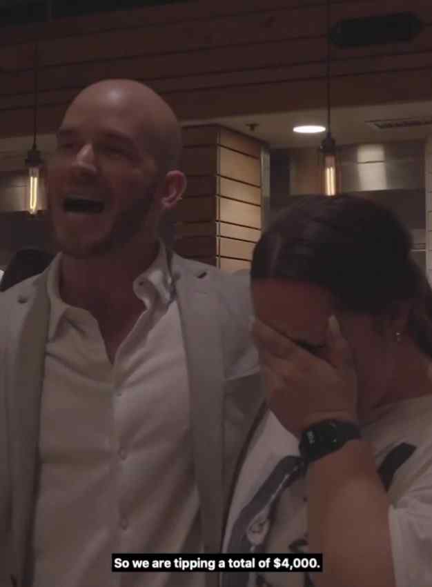 In an unexpected turn of events, she and the other waitress (who had to leave before the film was taken because she was sick) each earned $100 in tips, totaling $4,400.