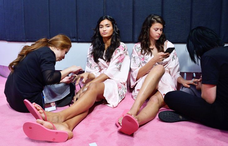 Models pose for cameras behind the curtains and take selfies in pink robes that have become an irreplaceable feature of the show backstage. These robes can be bought on the official website and before the show to make you feel like an ‘angel’.