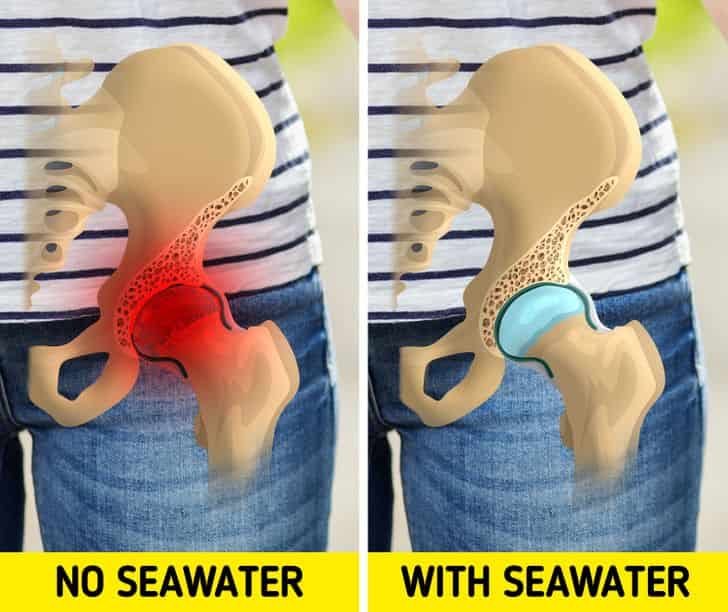 Thanks to magnesium, which helps our body maintain normal muscle and nerve functions, salty seawater effectively relieves aches and pains. Water from the Dead Sea has even proved useful against arthritis. Ocean swimming also reduces arthritis pain and stiffness, as the water cuts the pressure of gravity that constricts the joint and provides sore limbs with 360-degree support.