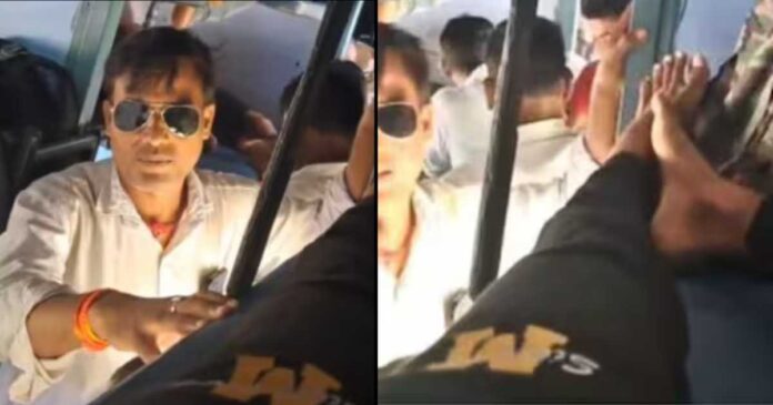 The man is seen in the video requesting a seat from another passenger while riding in the sleeper carriage without a reserved ticket. A heated argument results from the reserved seat holder, who is sat on the side upper berth, refusing to give way.