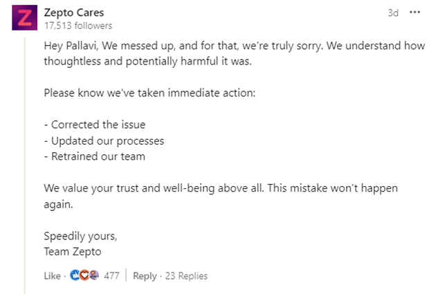 This wasn’t a small issue either. It caused such a stir that Zepto had to publicly acknowledge their mistake and promise to never let it happen again. It’s a reminder that sometimes, trying to stand out can backfire.