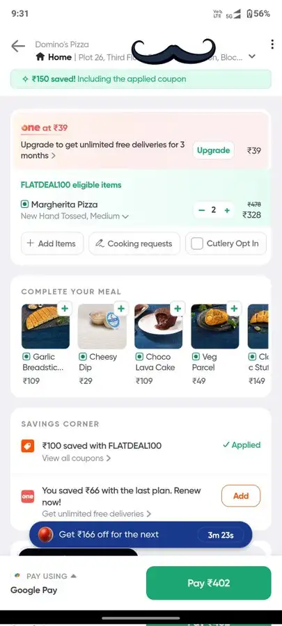 Ordered the exact same food on Swiggy and Zomato. @Swiggy charged Rs 402, @zomato Rs 550. Bro, am I paying for pizza or a 5-minute Zoom call with the chef?
